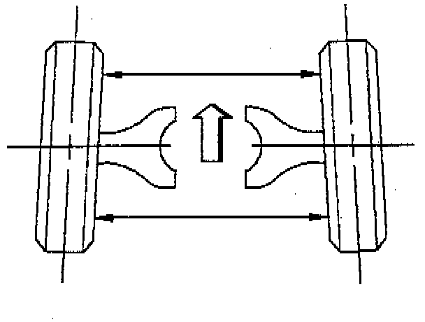 The toe is a measurement of how much the front of the wheels are turned in or out from a straight-ahead position. When the wheels are turned in, the toe is positive (+). When the wheels are turned out, the toe is negative (-). The actual amount of toe is nominally only a fraction of a degree. The purpose of the toe is to ensure that the wheels roll parallel. The toe also serves to offset the small deflections of the wheel support system that occurs when the vehicle is rolling forward. In other words, even when the wheels are set to toe in or out slightly when the vehicle is standing still, the wheels tend to roll parallel on the road when the vehicle is moving. The toe affects tire wear.