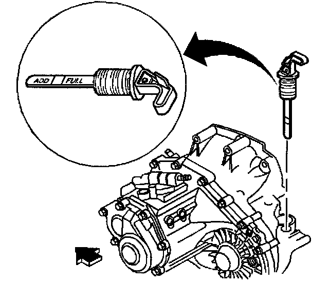 3. If the indicator reads ADD or below, fill the transaxle to FULL with synchromesh transaxle fluid GM P/N 12345349 or equivalent.