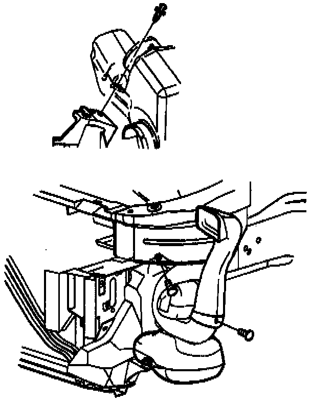 2. Install the resonator rear push in retainer and the upper attaching bolt. Tighten the Resonator upper attaching bolt to 7 Nm (61 lb in).