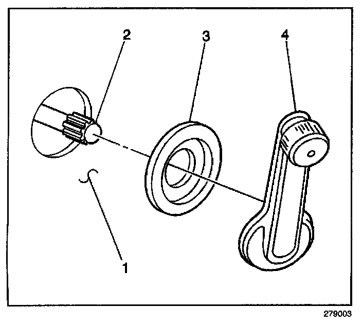 4. Push the door window regulator handle (4) in order to secure the retaining clip.