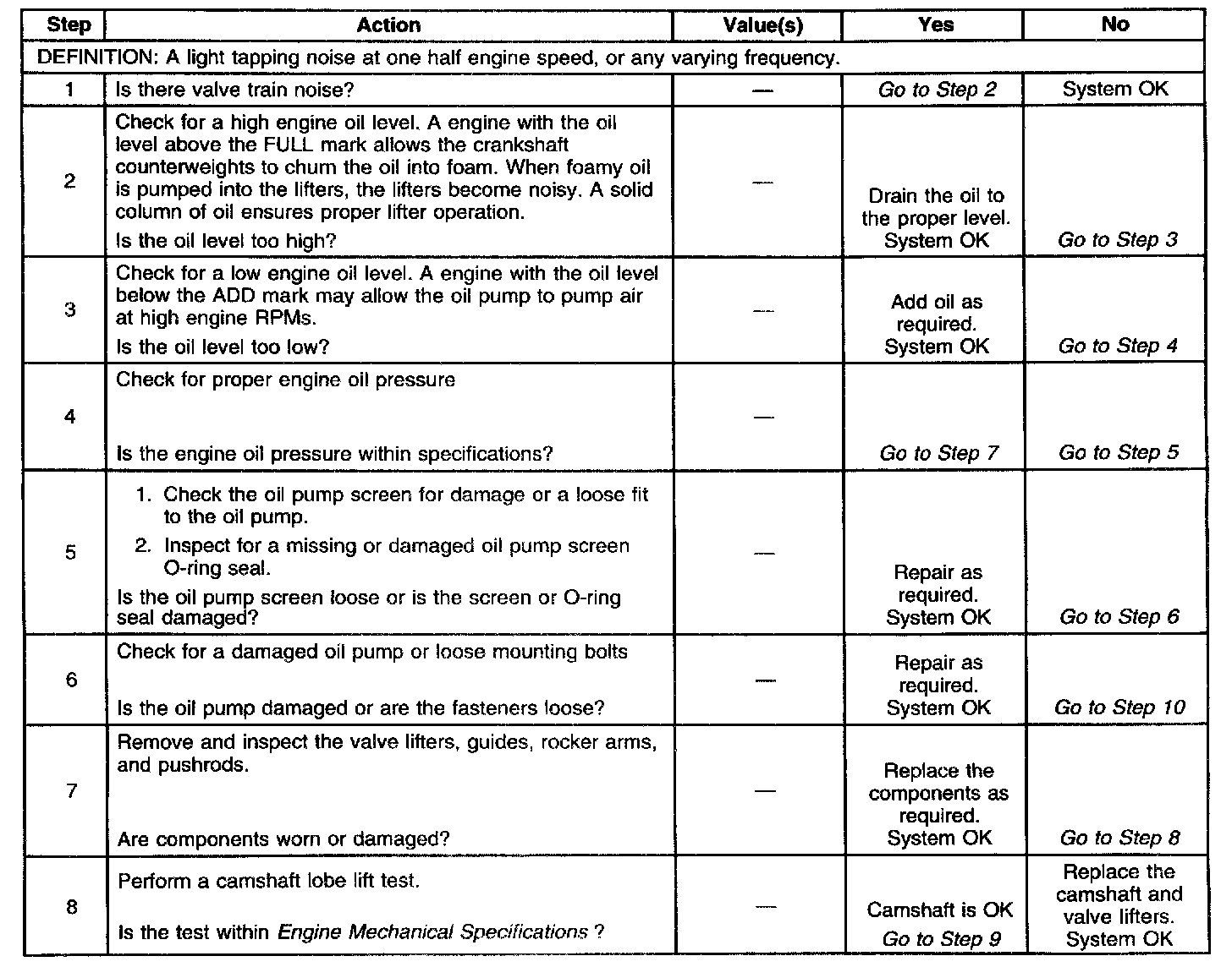 Diagnostic Table