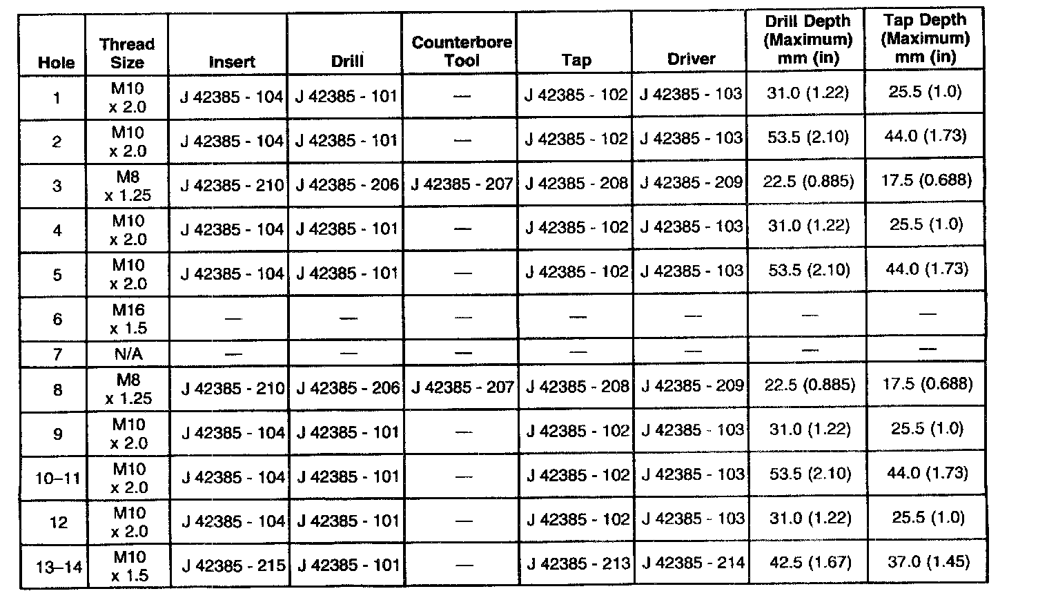 Thread Repair Specifications