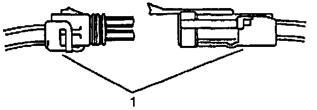 ^ Insert the Weather Pack(R) terminal removal tool into the front (mating end) of the connector cavity until it rests on the cavity shoulder (1).