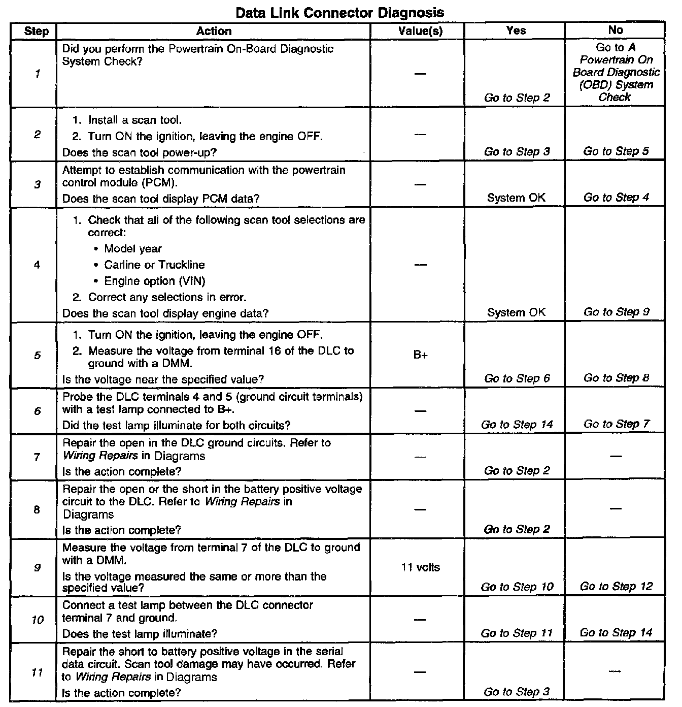 3. This step checks if the scan tool can establish communication on the PCM serial data line. This step checks for B+ at the DLC.
