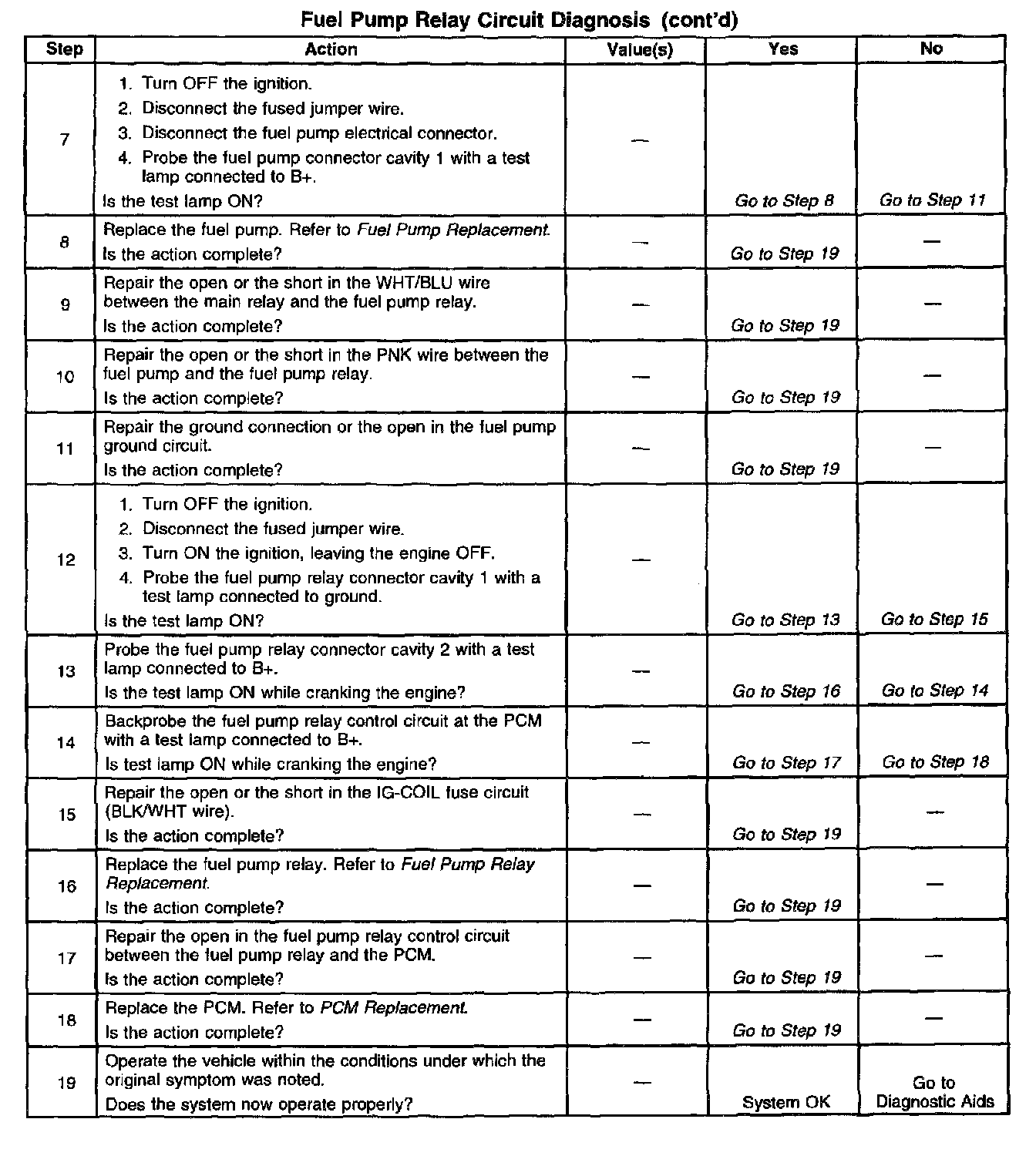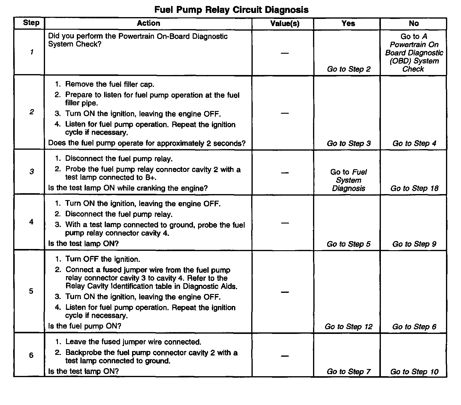 Fuel Pump Relay Circuit Diagnosis