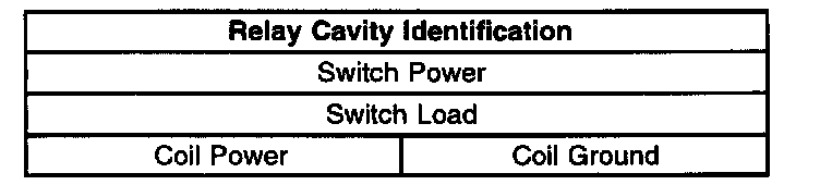 Use the relay cavity table in order to locate the correct cavities to probe during diagnosis. The table layout corresponds to the cavity layout of the relay block.