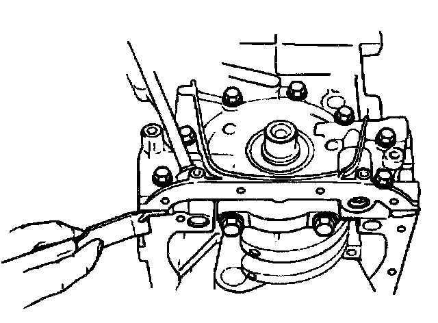 10. Use a sharp knife in order to cut off the edge of the oil pump gasket if the edge of the gasket bulges out.