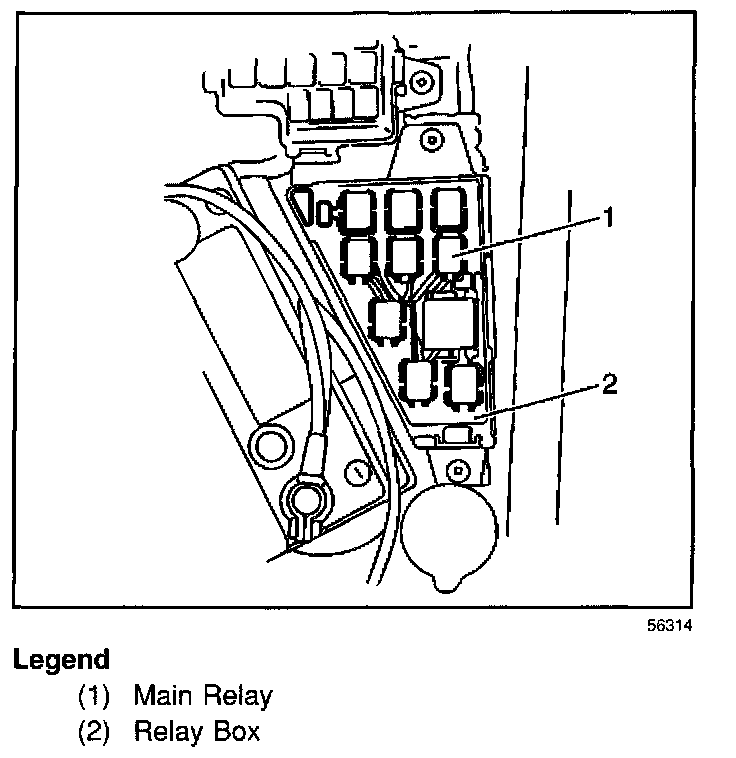 The main relay is located in the relay box on the LH side of the engine compartment near the battery.