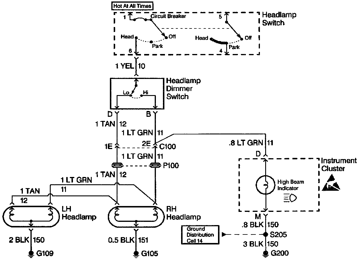 Review the schematic, it is essential to understand how a circuit should work before trying to figure out why it doesn't. After understanding how a circuit should operate, read the schematic again, this time keeping in mind what has been learned by operating the circuit. Since both the low beam headlamps are inoperative, ensure that the following components are operating properly.