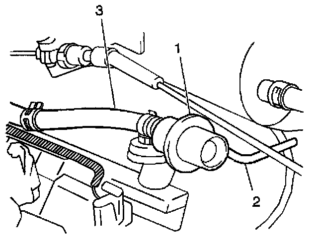 4. Disconnect the fuel return hose (3) from the fuel pressure regulator (1).