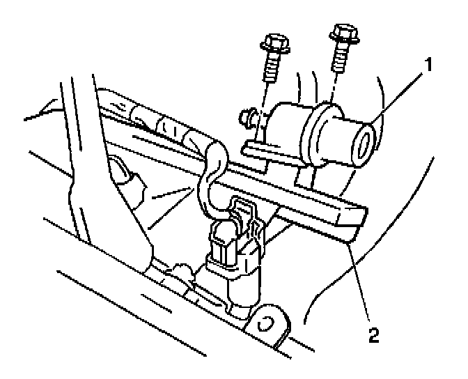 3. Install the fuel pressure regulator (1) to the fuel rail (2).