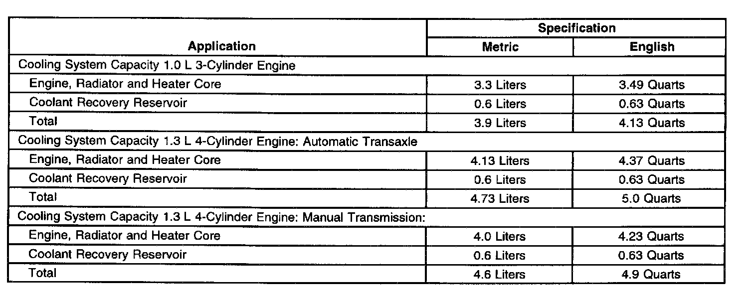 Engine Cooling System Specifications