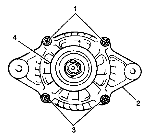 3. Remove the four generator housing bolts (1,3) from the front housing.