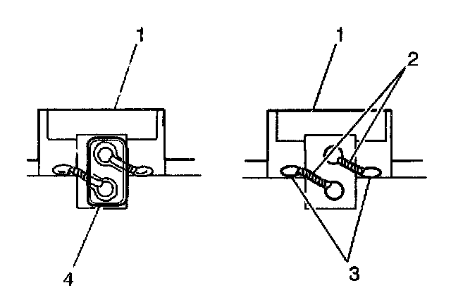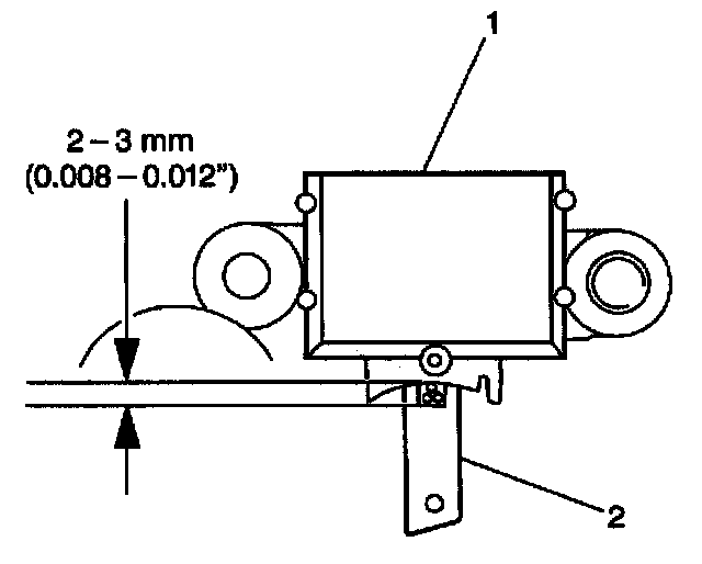 2. Install the brush springs and the brushes to the regulator so that the label on each brush is 2-3 mm (0.008-0.012 in) from the rectifier.