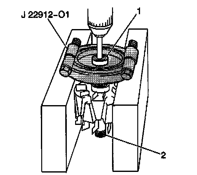 11. Remove the rear bearing (1) from the rotor using a J22912-O1 and a press.