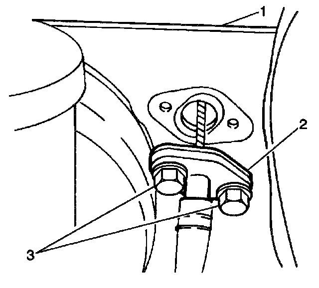 4. Install the 2 clutch cable grommet bolts (3) to the bulkhead (1).