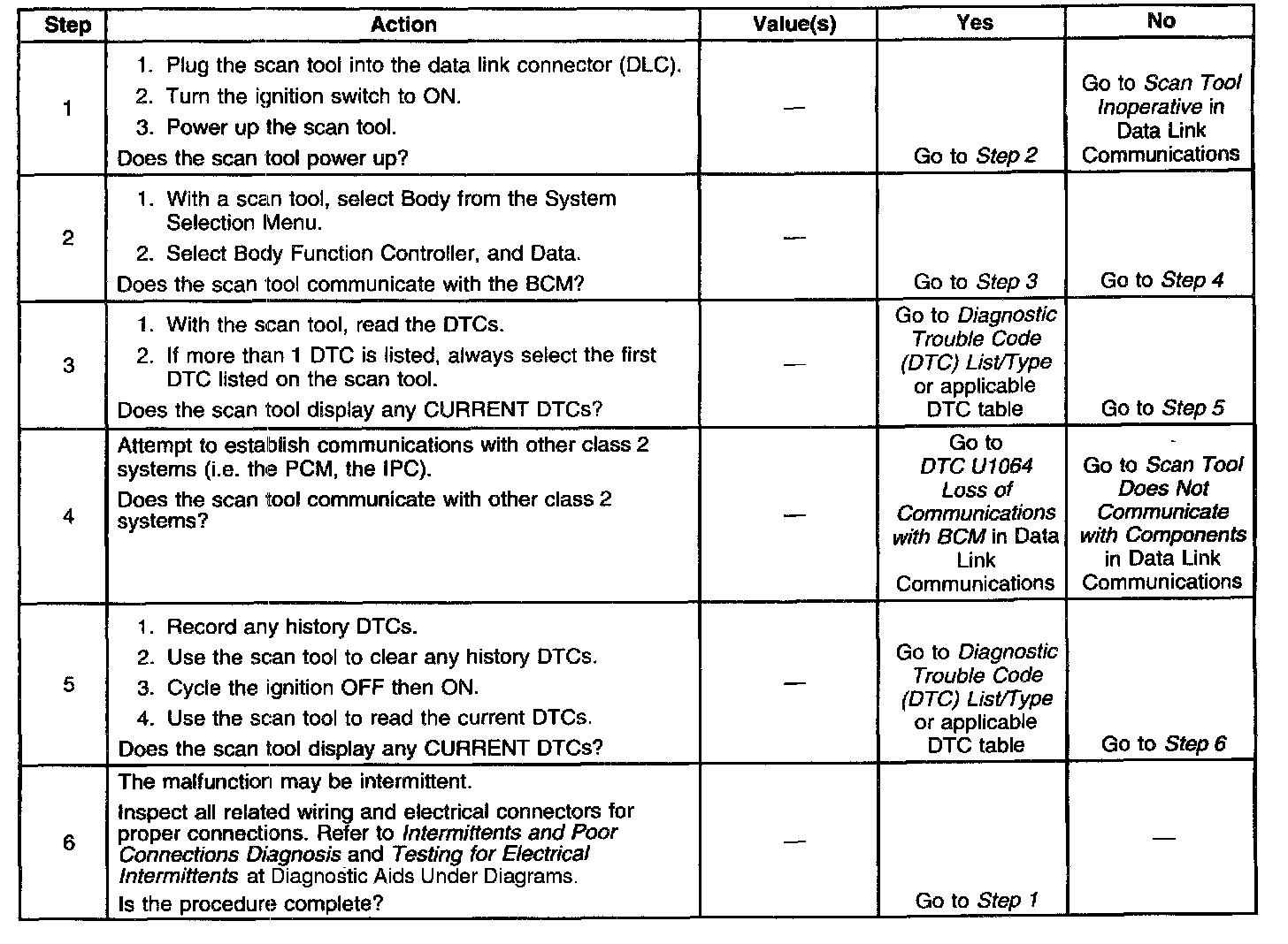 Body Control Module System Check:
