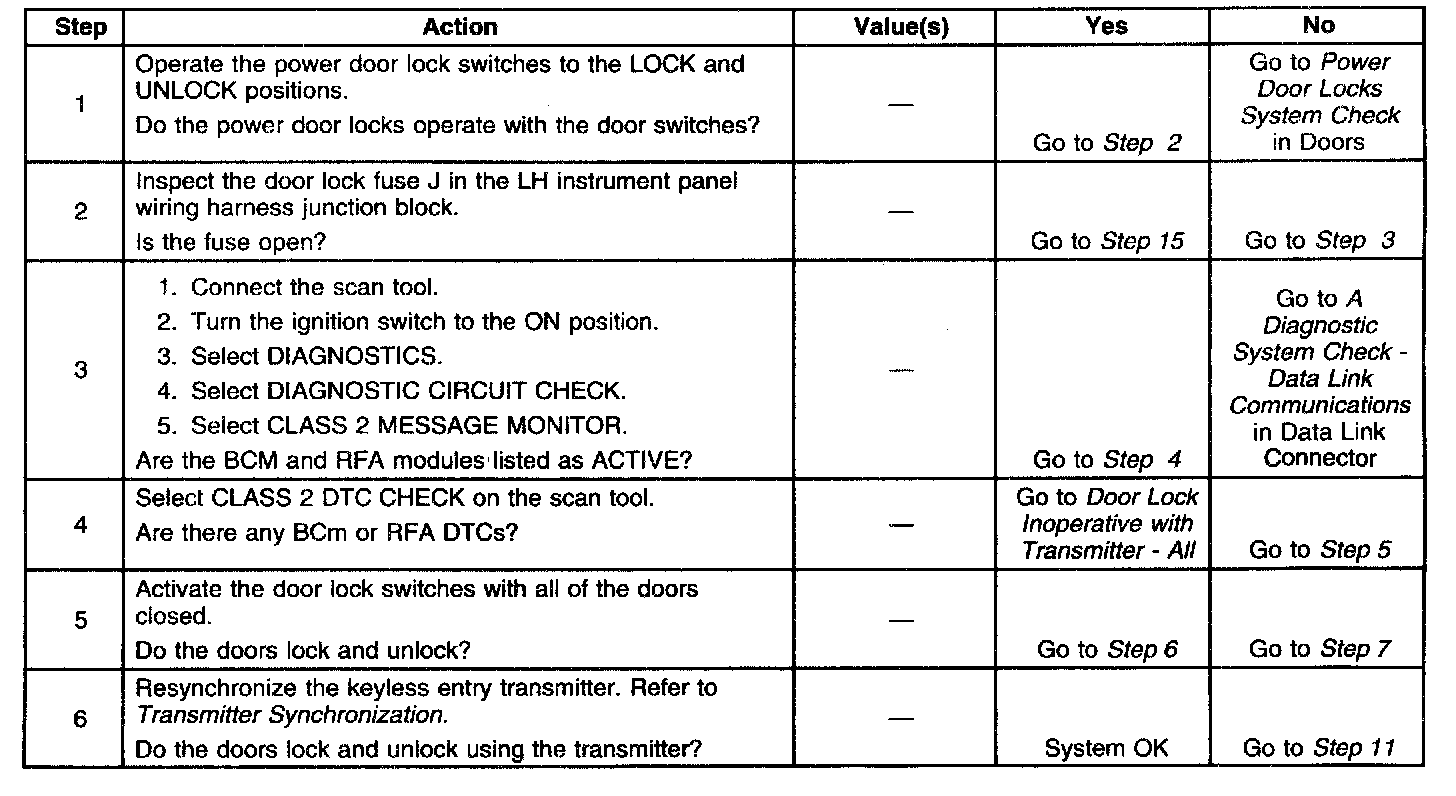 ^ Inspect the power door locks for correct operation. If the locks do not operate correctly, repair the locks before you diagnose the RFA system.