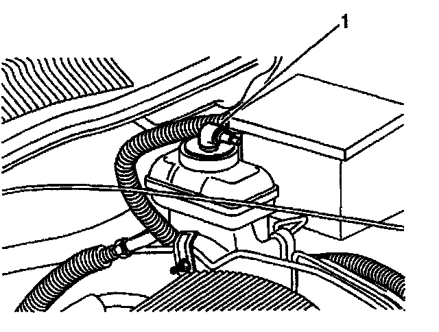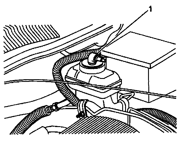 6. Refill the brake fluid reservoir with clean DOT 3 brake fluid to the proper level (1).