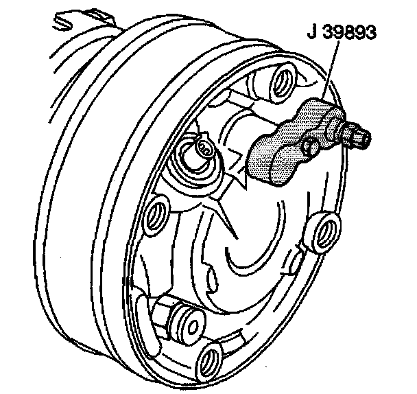 1. With the sealing washers in place, install the J 39893 on the rear head of the compressor.