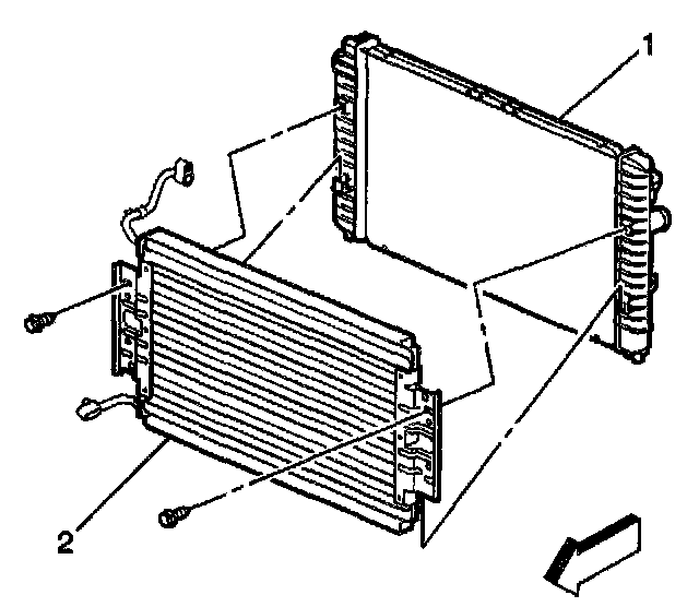 5. Remove the condenser (2) from the radiator (1).