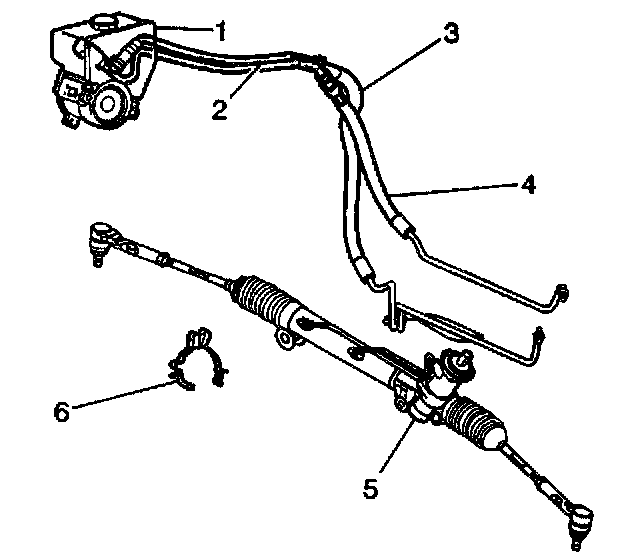 1. Install the pressure hose (4) to the power steering gear (5).