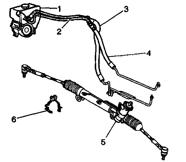 5. Remove the power steering return hose (3) from the retainer (6).