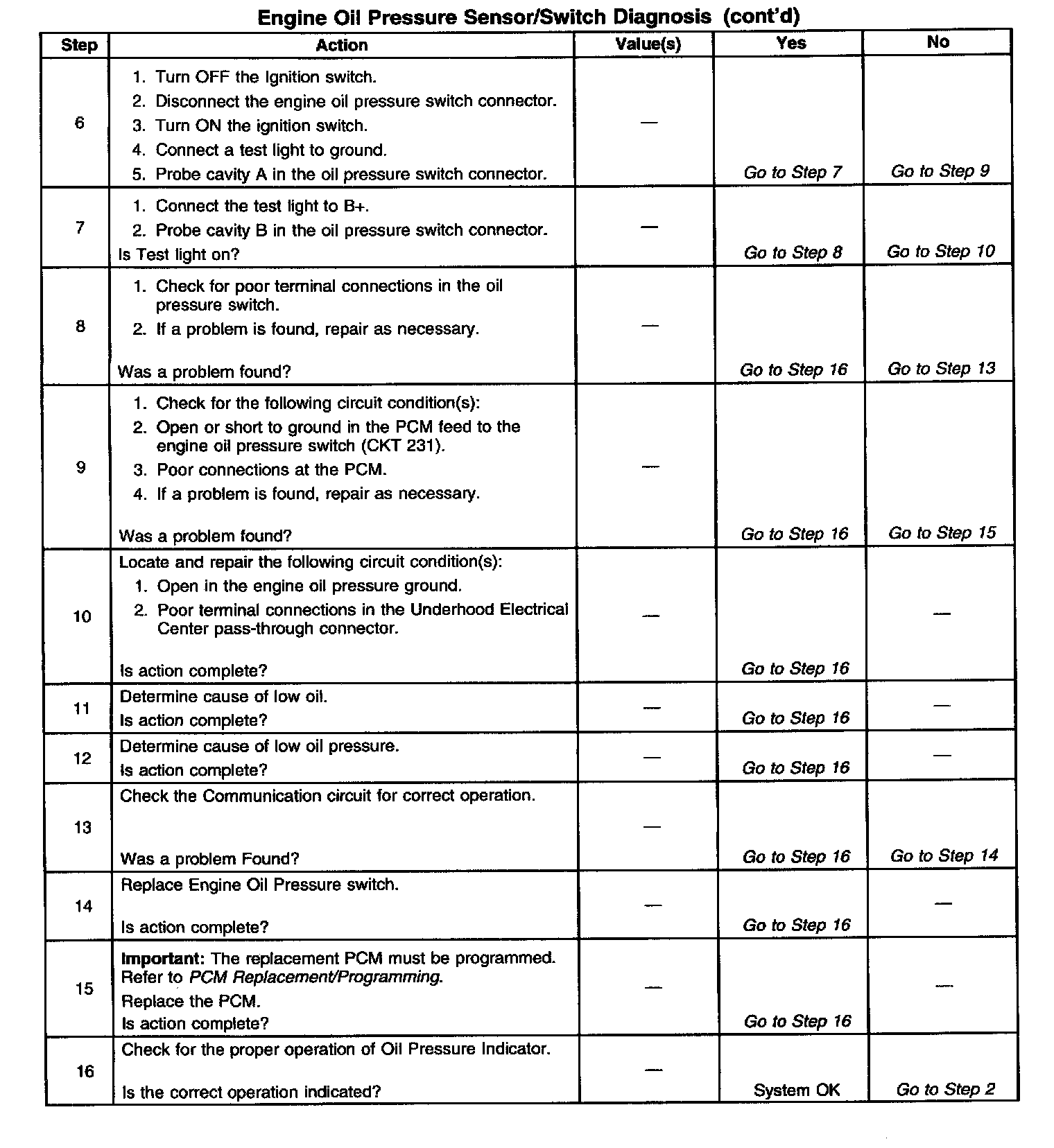 Engine Oil Pressure Sensor/Switch Diagnosis