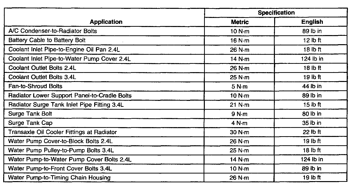 Fastener Tightening Specifications