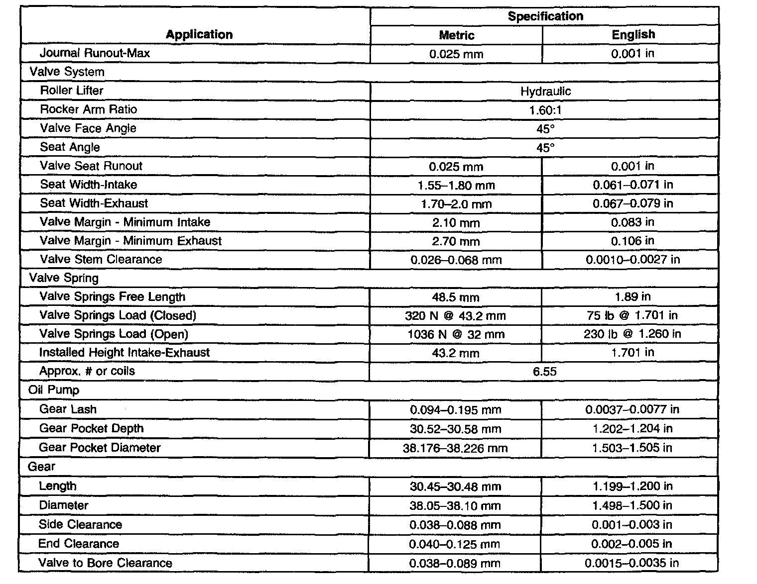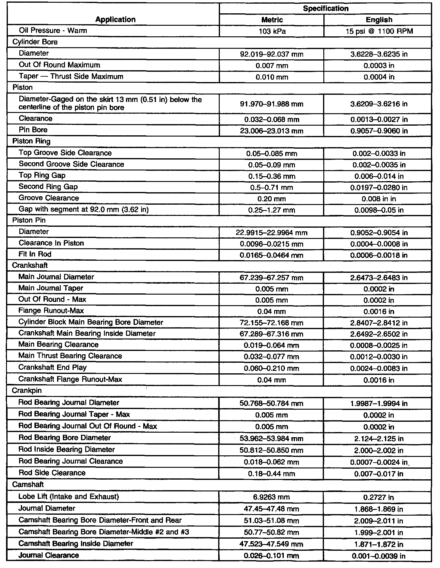 Engine Mechanical Data/Dimensions