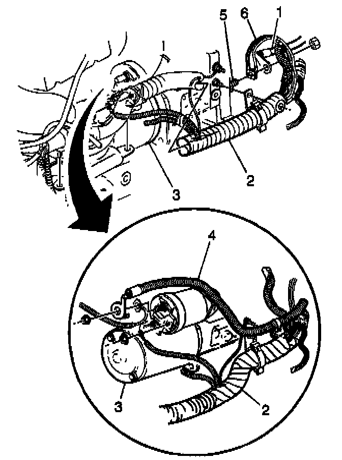 NOTE: When installing the positive battery cable to the starter solenoid, the inner nut on the solenoid battery terminal must be tightened before the battery cable and the other leads are installed. Failure to do so will result in the solenoid or the solenoid terminal damage.