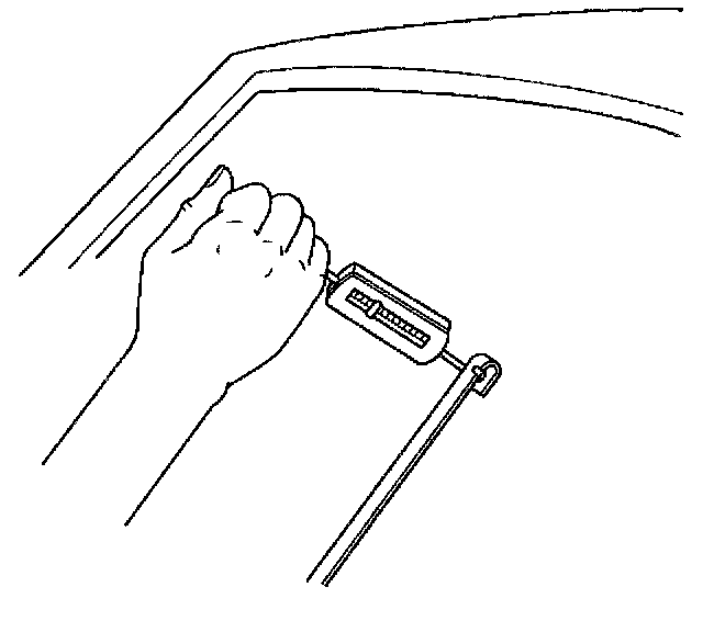 3. Attach a scale to the wiper arm assembly where the wiper blade assembly attaches. Measure the force required to lift the wiper arm assembly perpendicular to the windshield to normal working height (the height with the wiper blade assembly attached).
