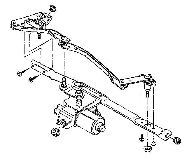 1. Remove the wiper arm assemblies from the wiper transmission assembly drive shafts.
