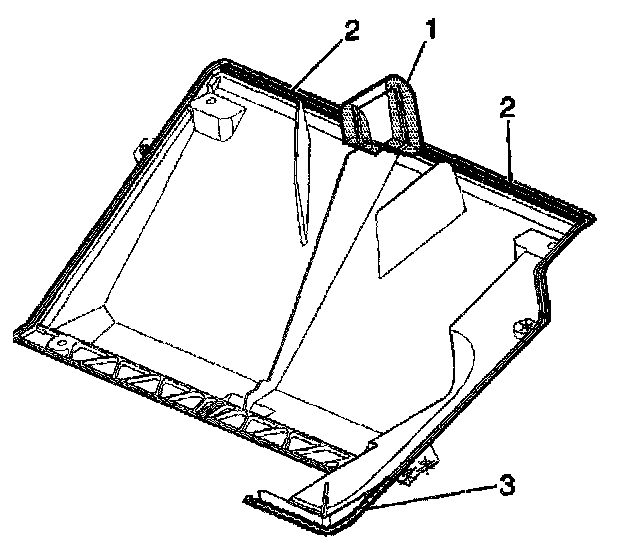 11. Remove and discard the seals (1,2,3) from the heater core cover.