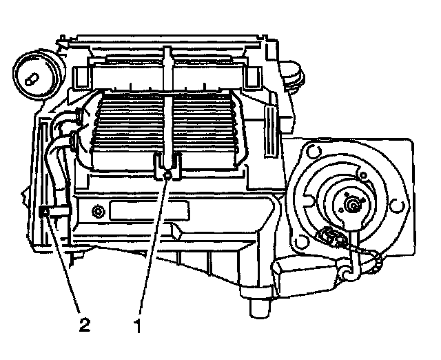 2. Install the heater core upper seal (2) from the HVAC lower case.