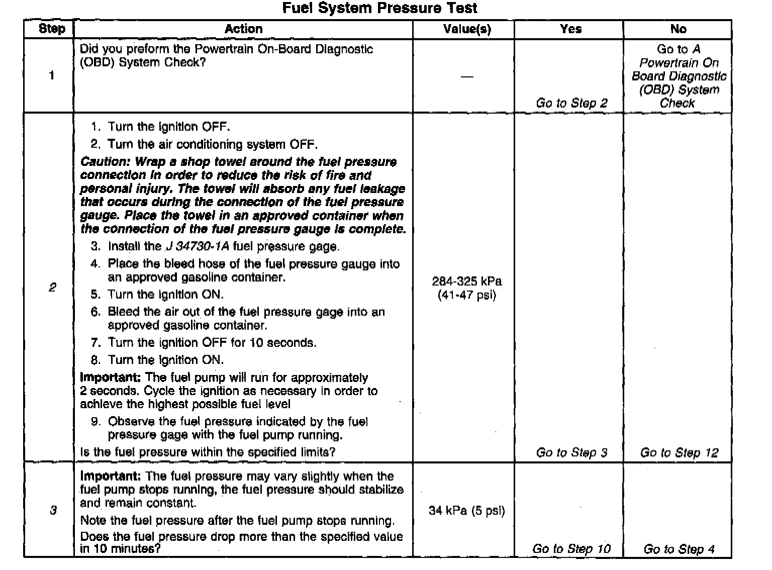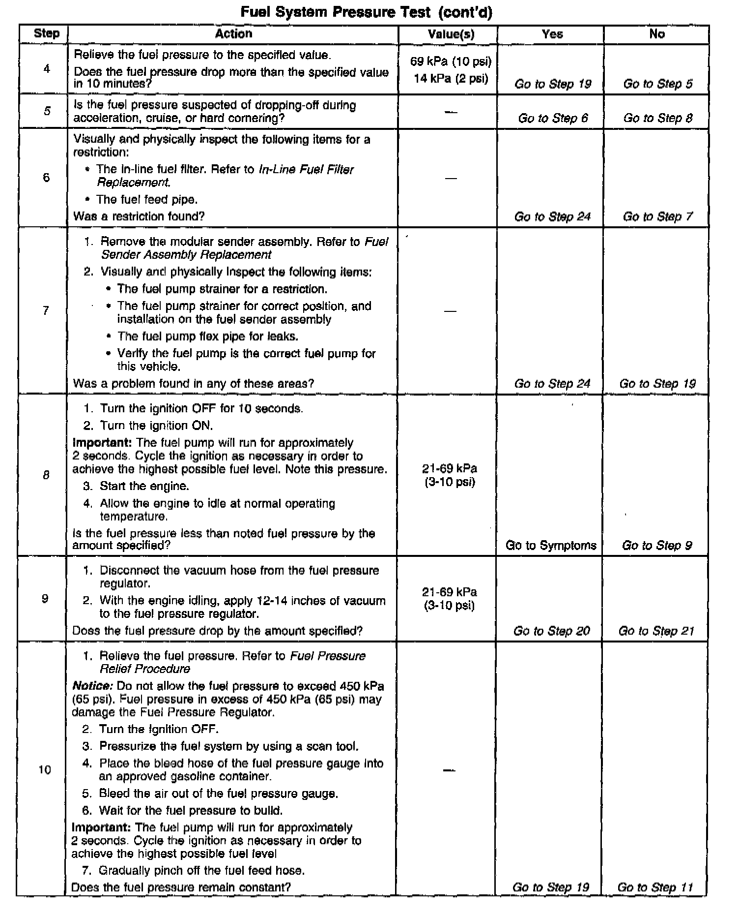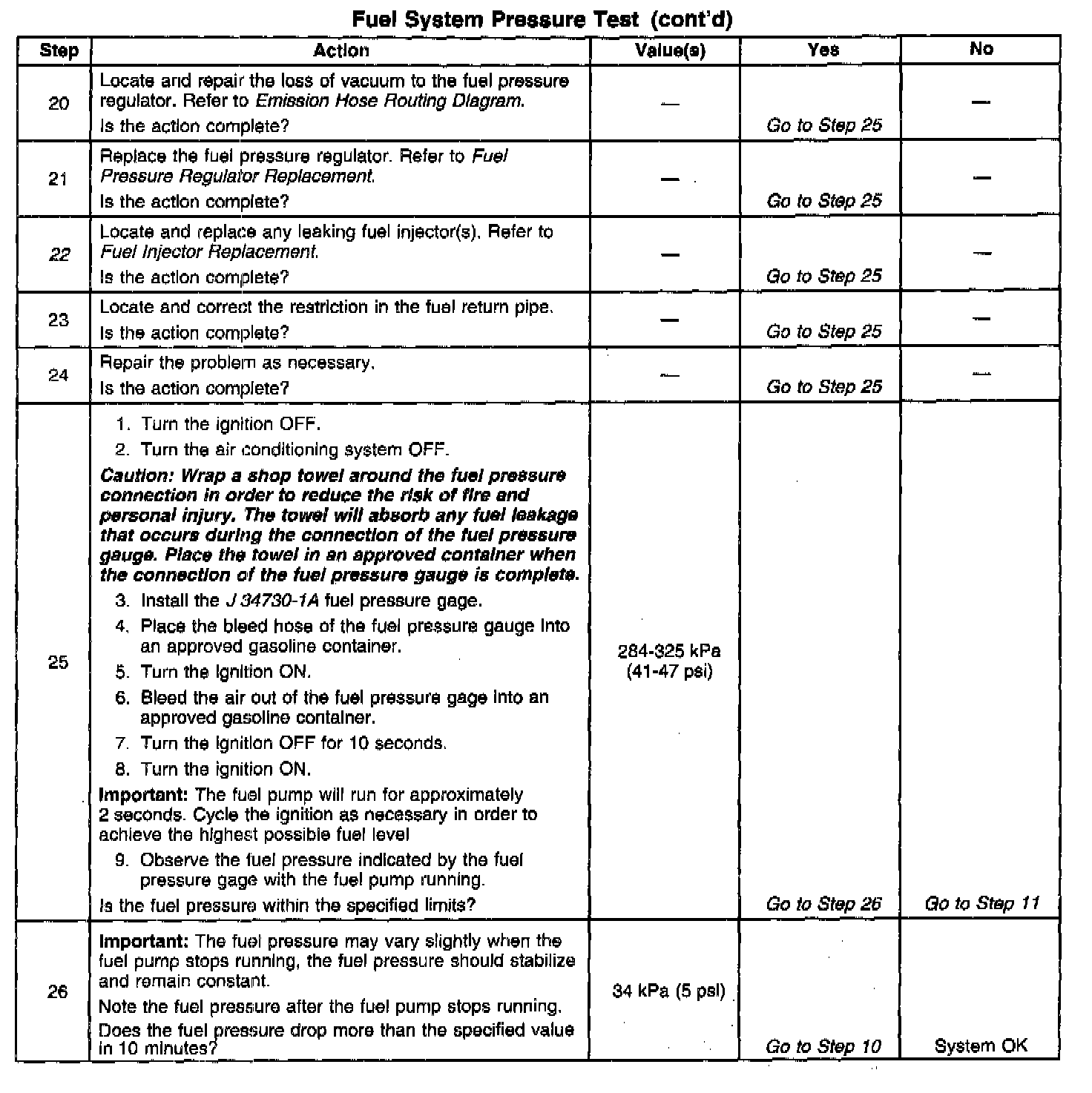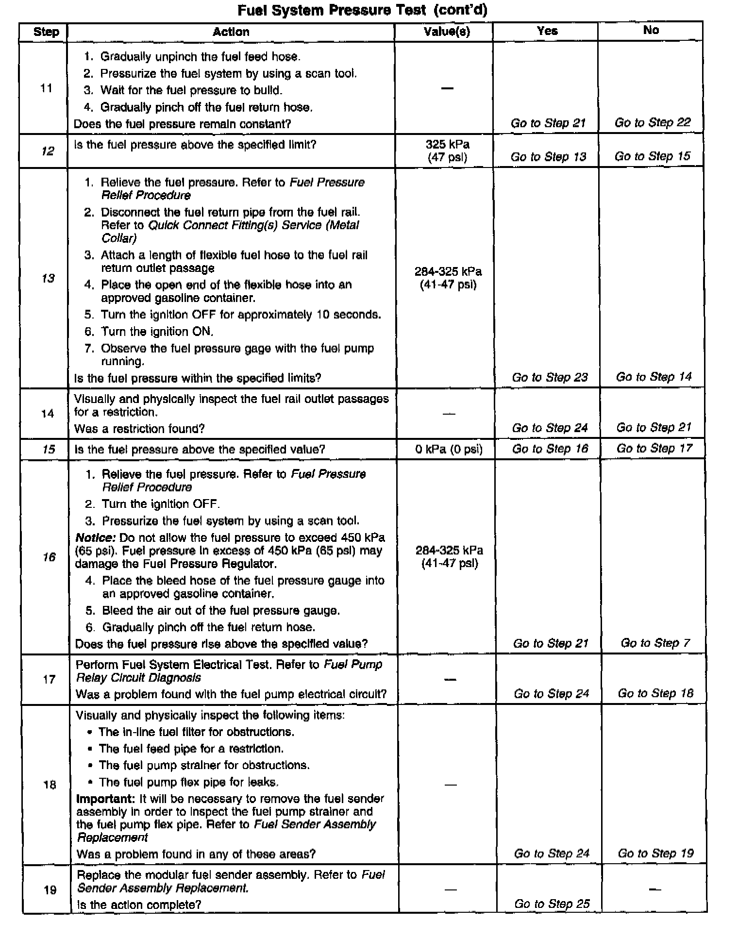 13. This test determines if the high fuel pressure is due to a restricted fuel return pipe or if the high fuel pressure is due to a faulty fuel pressure regulator.