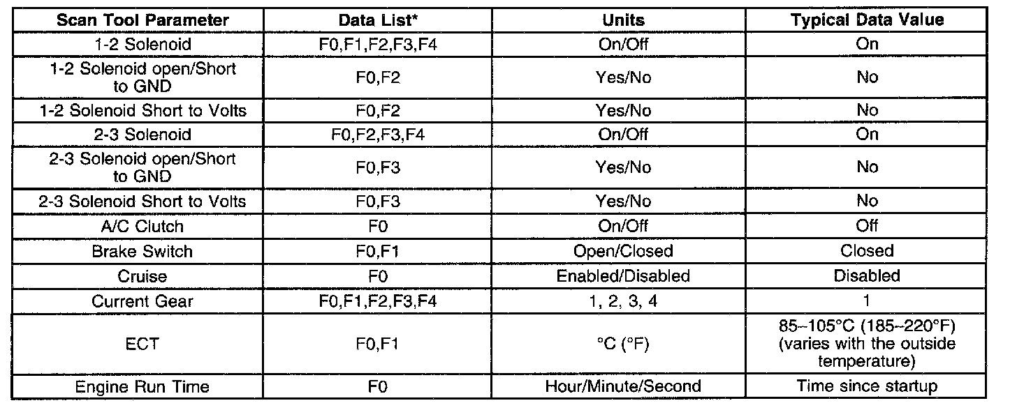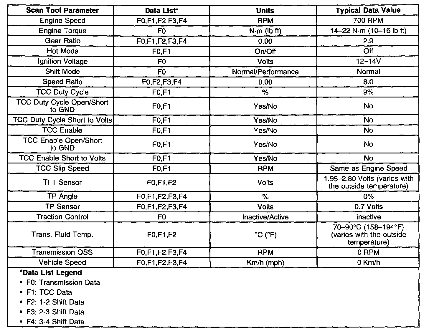Only the parameters listed below are used for diagnosing. If a scan tool displays other parameters, the values are not recommended by General Motors for use in diagnosis. Scan tool values below were recorded under the following conditions: