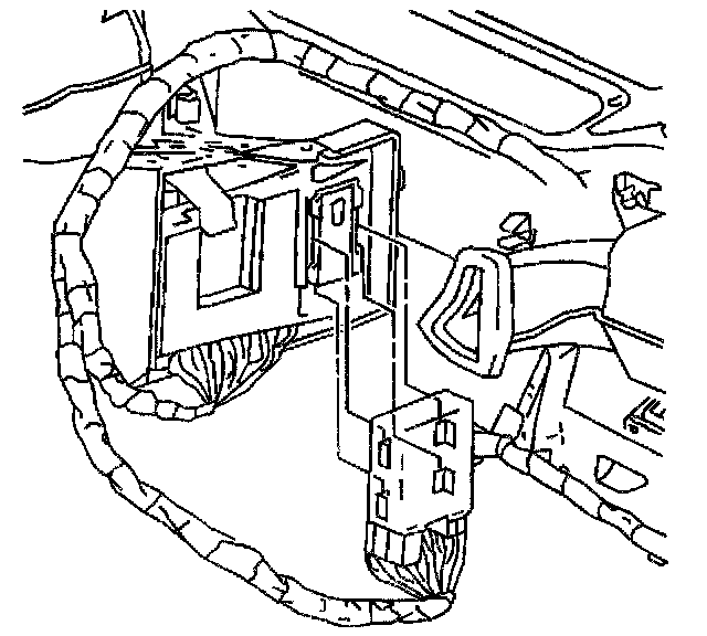2. Position the DRL module to the BCM bracket, then slide the module downward to secure the module tabs into the retaining slots on the bracket.