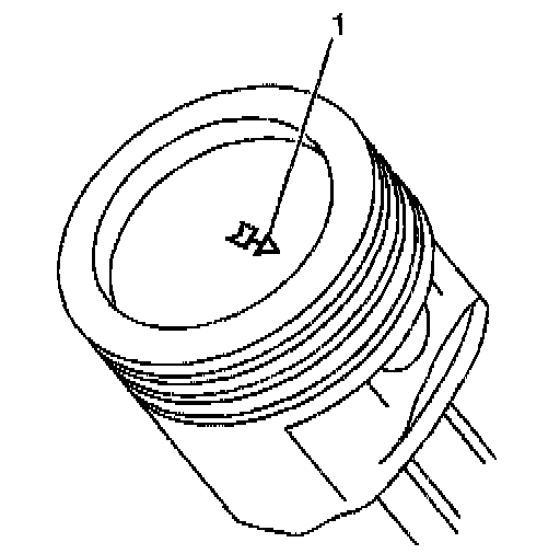 6. Align the piston and the connecting rod with the arrow (1) toward the front of the engine.