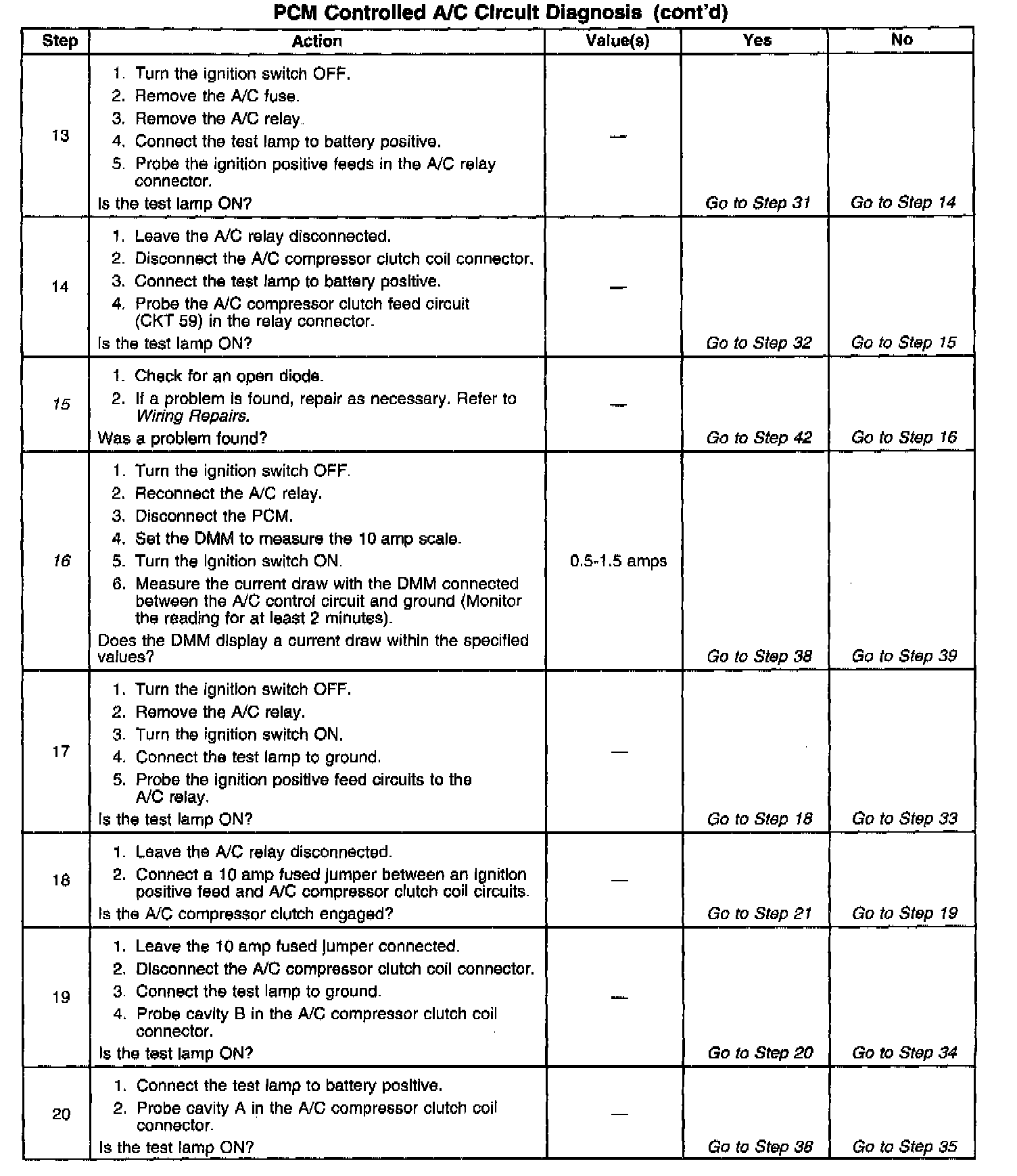 16. Determines whether the A/C relay current draw is the reason for the blown A/C fuse.