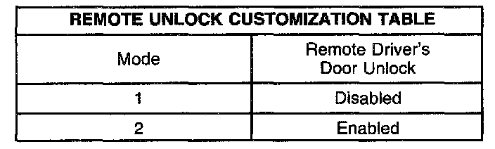 IMPORTANT: If the ignition switch is in the OFF position during this procedure, the remote unlock control customization will be terminated. The system will remain in the most recent mode.