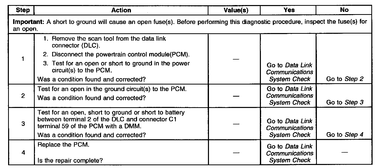 Scan Tool Does Not Communicate W/Class 2 Data Line: