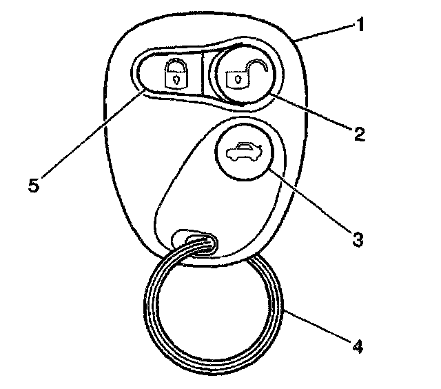 Serial data is transmitted on a radio frequency carrier signal at 315 MHz. The signal is transmitted from the transmitter to the remote control door lock receiver when pressing one of the following buttons on the transmitter: