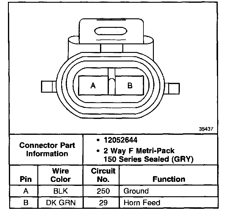 Connector end views show the cavity or terminal locations for all the related 2-pin or larger connectors shown in the system schematic(s). The drawings show the connector's face as seen after the harness connector has been disconnected from a component or mating connector. Unused cavities are left blank in the table.