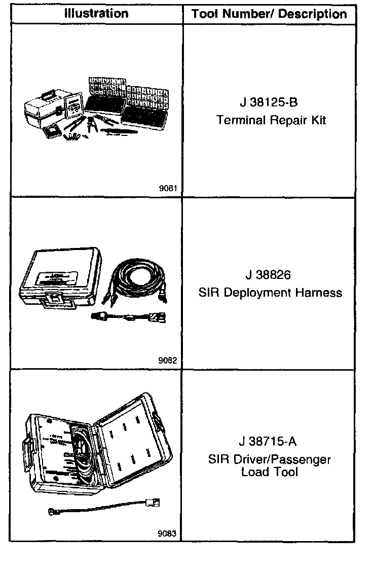 Use the J 38715-A SIR Driver/Passenger Load Tool only when required by the SIR diagnostics. The Load Tool is used as a diagnostic aid and a safety device in order to prevent inadvertent inflator module deployment.
