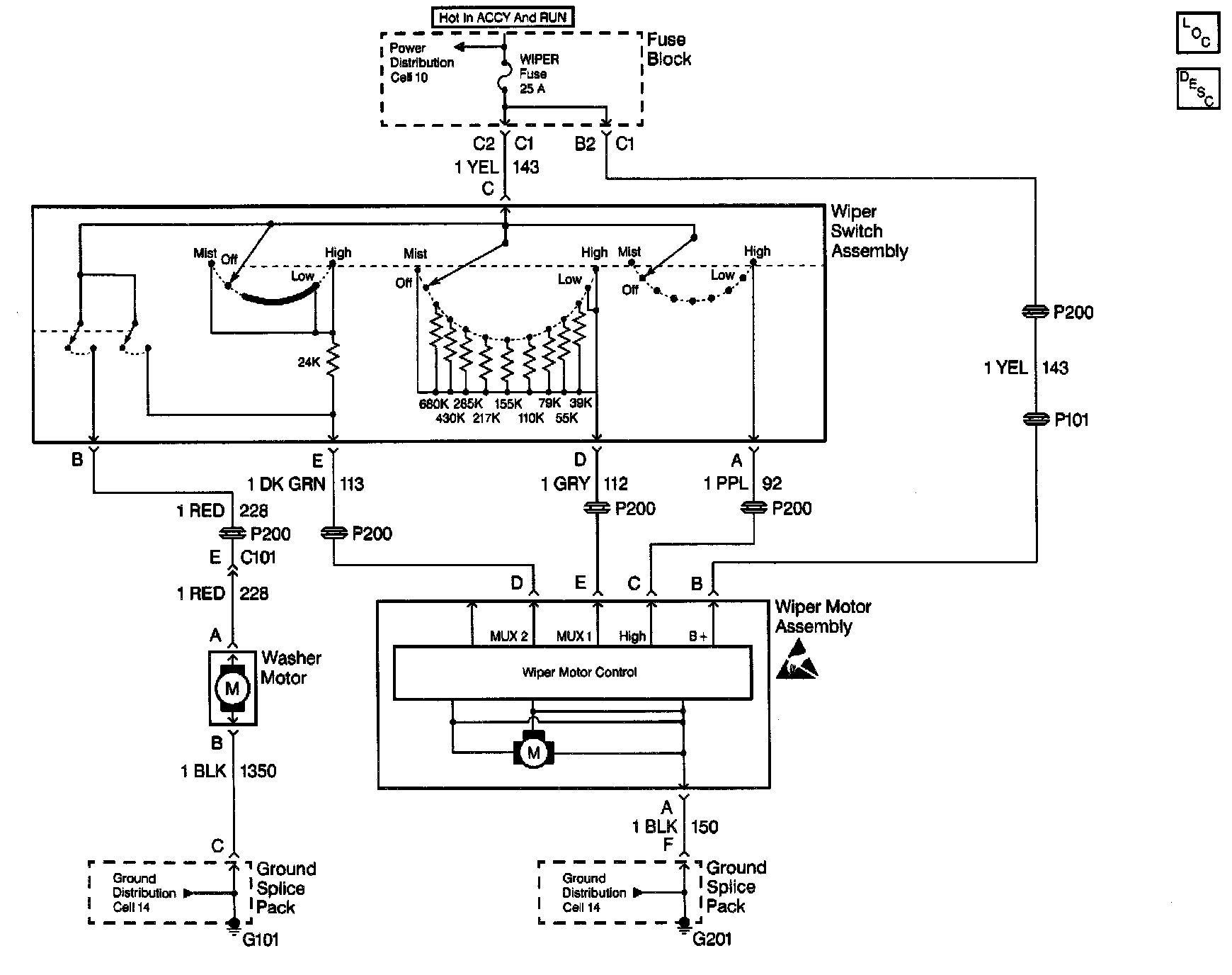 Wiper/Washer System (Pulse) Schematics: