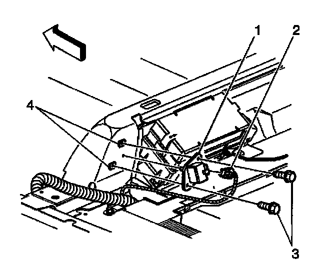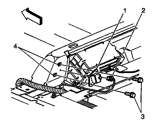 3. Disconnect the lateral accelerometer sensor electrical connector (2).