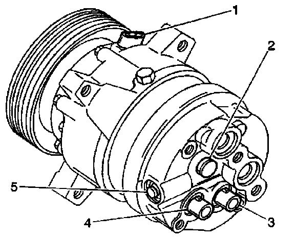 6. Perform a leak test. Refer to Compressor Leak Testing (V5 - Conventional Mount). Compressor Leak Testing (V5 - Conventional Mount)