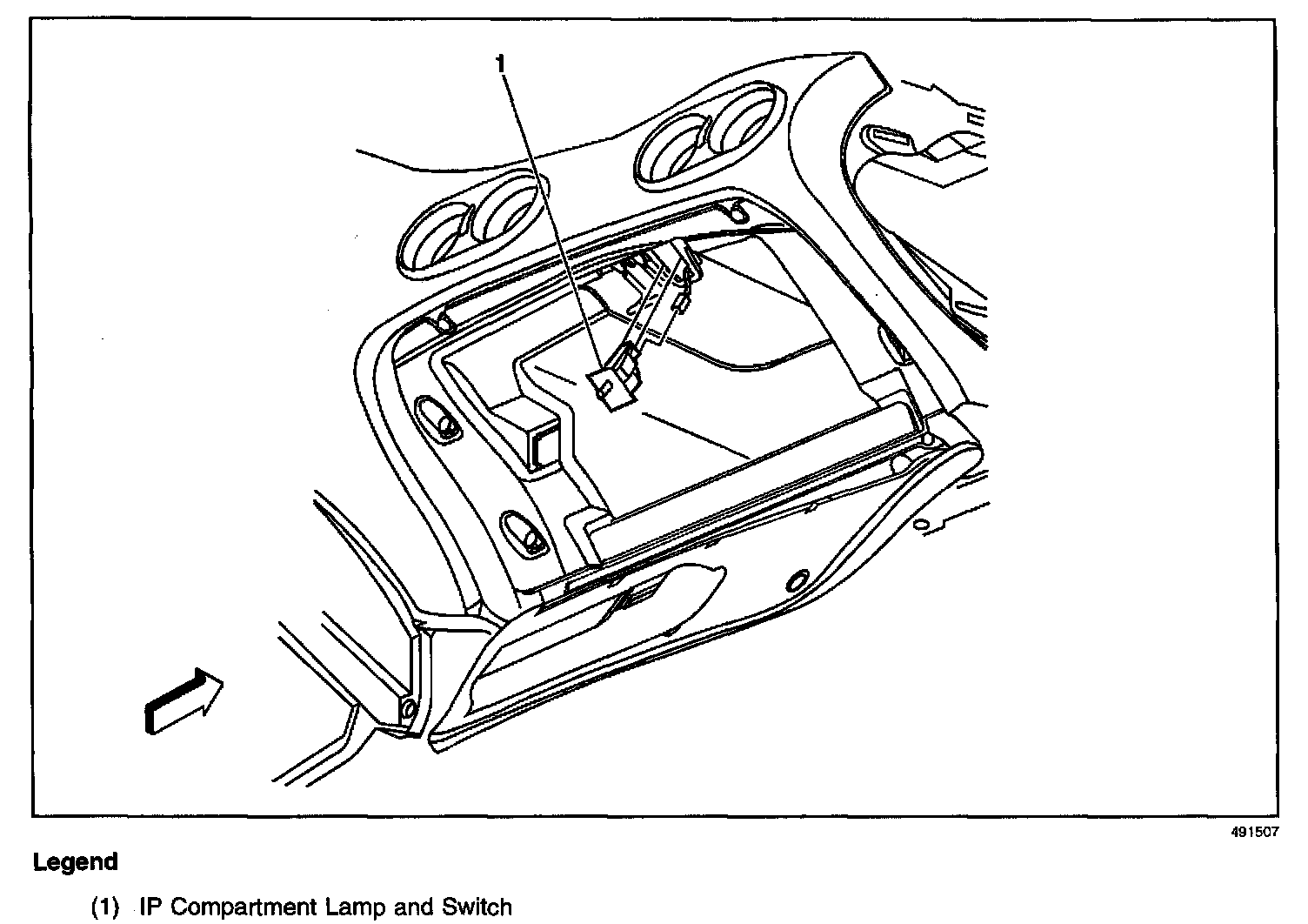 Upper left of the instrument panel compartment opening