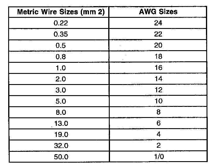 Wire Size Conversion Table: